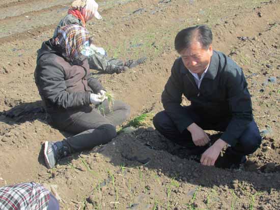 黑龙江省齐市梅里斯达斡尔族区委书记黄大庆深入大八旗村洋葱定植现场调研