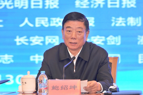 中国法学会党组成员、副会长兼秘书长鲍绍坤主持报告会