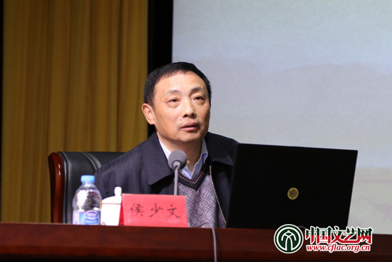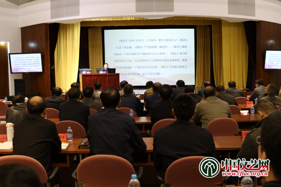 11月8日,中国文联举办学习贯彻党的十九大精神专题辅导报告。图为中央党校教授、博士生导师侯少文为党员领导干部解读党的十九大精神。