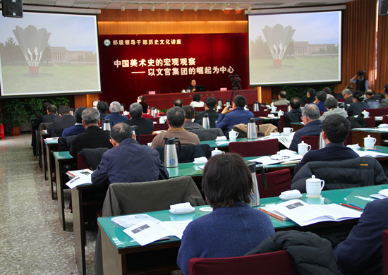 2018年2月25日,由中央国家机关工委、文化部、中国社会科学院联合主办,国家图书馆承办的部级领导干部历史文化讲座,在国家图书馆古籍馆举办2018年第2讲,中央美术学院人文学院院长、教授、博士生导师尹吉男作了题为《中国美术史的宏观观察——以文官集团的崛起为中心》的讲座。