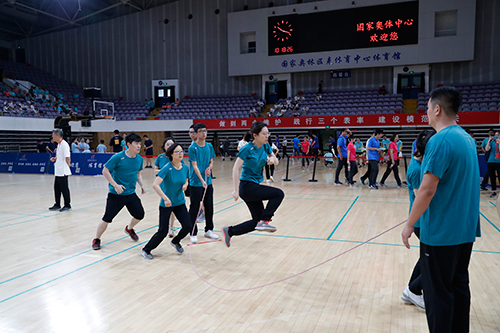 本次比赛采用3分钟10人“8”字跳绳的方式进行,相同时间内所跳次数多者获胜。来自中央和国家机关83个部门的1200余名干部职工参赛,根据各部门干部职工人数多少,参赛队伍分为甲乙丙三个组别。参赛运动员坚持安全第一、友谊第一、比赛第二的宗旨,赛出了水平,赛出了风格,展现了中央和国家机关干部职工的良好风貌。