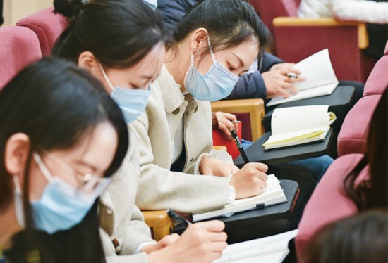 2020年11月7日,中央宣传部、中央和国家机关工委、教育部、中央军委政治工作部、中共北京市委在北京举办学习贯彻党的十九届五中全会精神中央宣讲团首场报告会。在京党政军机关干部、中央企业负责人、高校师生代表和各界群众,共700余人参加报告会。 新华社记者 李贺/摄