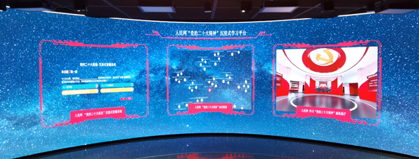 人民网“党的二十大精神”虚拟展馆内容包括习近平总书记讲话原声视频、精神要点、相关拓展知识点、权威解读、珍贵视频、照片等,帮助党员群体边“参观”场馆边学习,让大家看得懂,能领会,真正将党的二十大精神入脑入心。