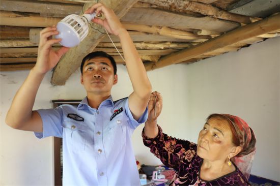 下马崖边境派出所“物业警察”何春明帮助群众修理家电。张辉摄