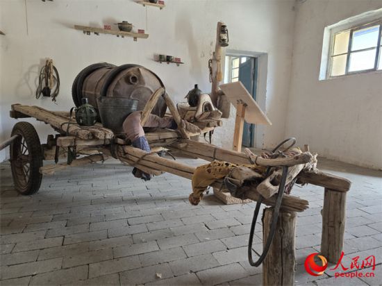 下马崖边境派出所陈列馆里的老水车。人民网记者 陈新辉摄
