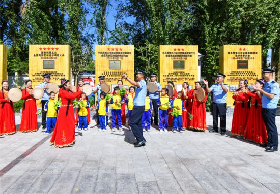 下马崖边境派出所民警与十二木卡姆民间艺人共跳民族舞。张辉摄