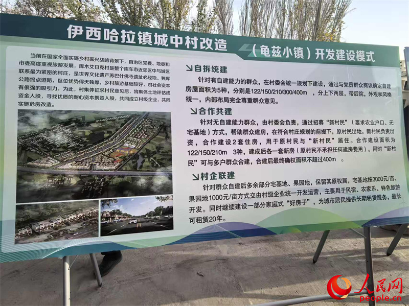 龟兹小镇开发建设模式展板。人民网记者 陈新辉摄